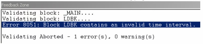 Error 8051 occurs in the Feedback Zone when validating program: