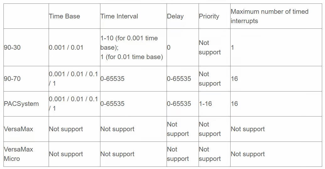 PACSystems RX3i, PACSystems RX7i, Series 90-30, Series 90-70, VersaMax, VersaMax Micro - timed interrupt options