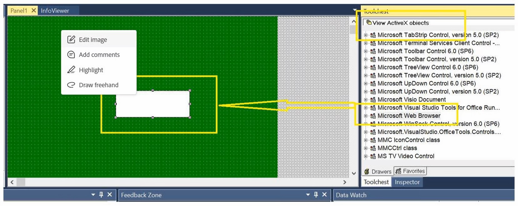 3. Drag Microsoft Web Browser from View ActiveX objects from Toolchest to the panel.